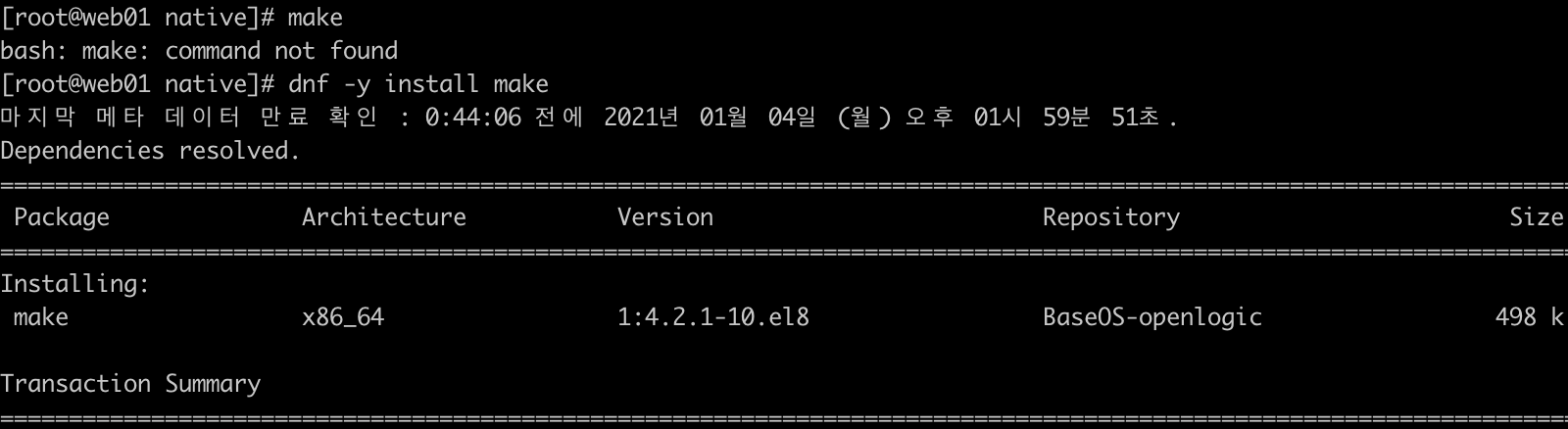 make 실행이 안되면 패키지 설치 dnf -y install make