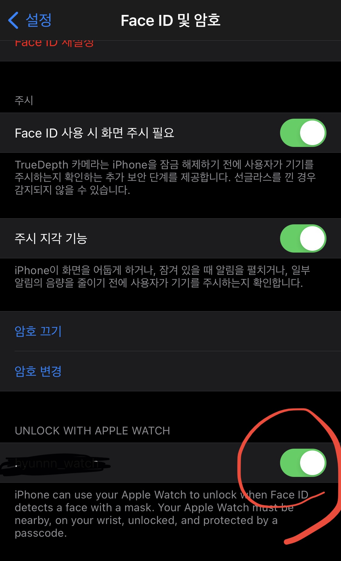 3. 설정 - face id 및 암호 입력 - apple watch 선택
