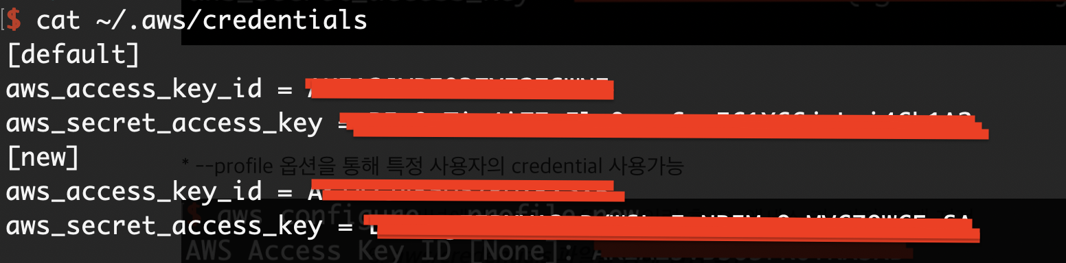 * aws configure --profile 옵션을 통해 credential 설정