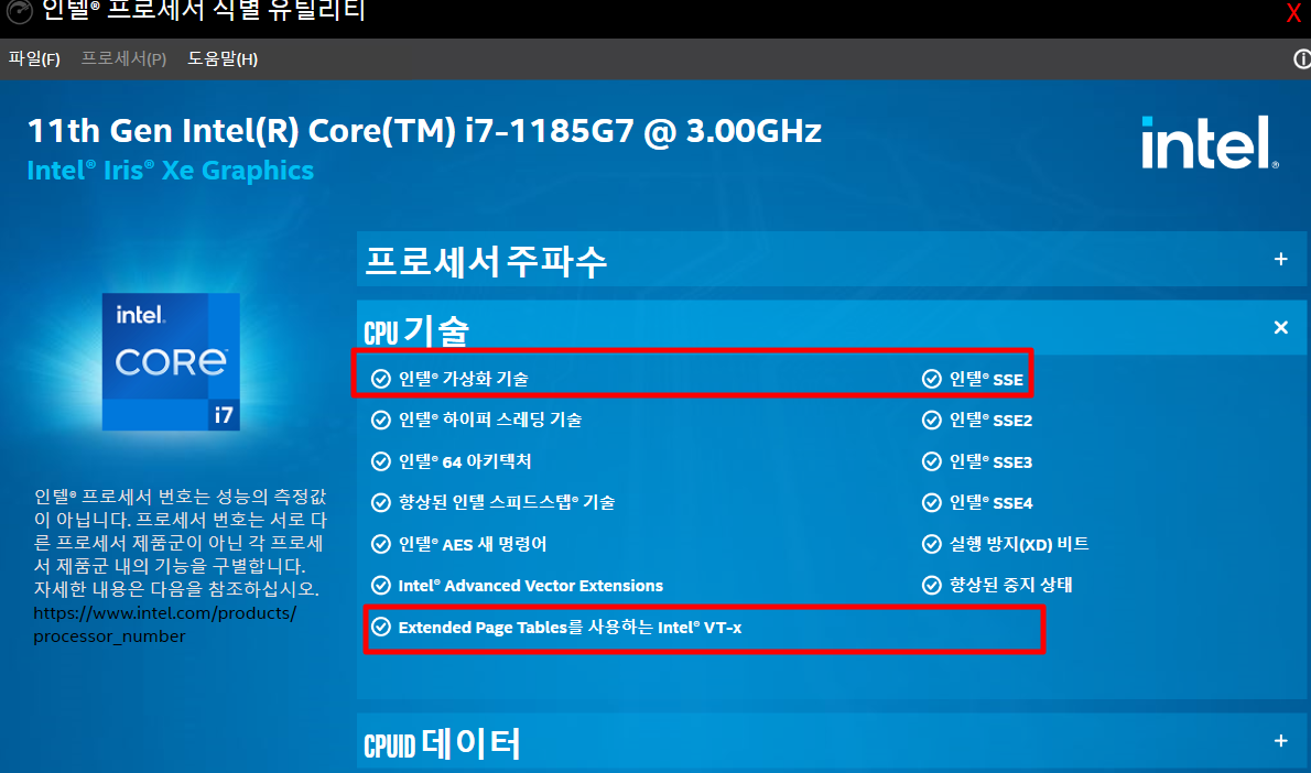 1. Support for Intel® Processor Identification Utility 다운로드한다.