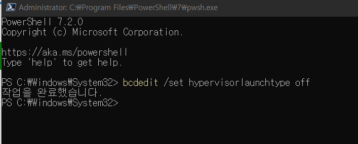 4. PWSH 관리자 권한으로 해당 명령 실행