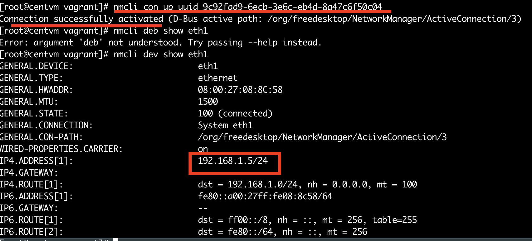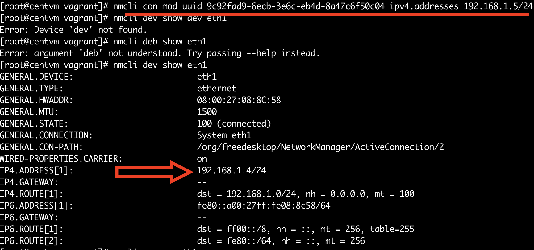 nmcli con up 을 통해 변경 확인