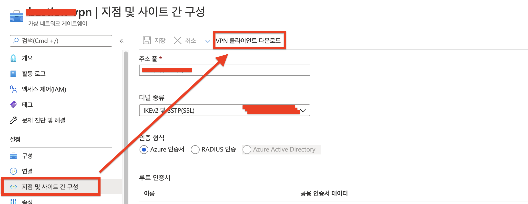 윈도우 보다 뭔가 할게 많은거같다. 1. VPN 클라이언트 다운로드(네트워크 설정값이 변경되면 다시 다운해야함) 2. 파일열기 3. 상단의 .cer 파일을 먼저 실행, xml 파일 열기 그리고 개인키를 가져온다. (.pfx파일) 4. 빨간색으로 칠한 부분 복사 5. 네트워크 환경설정 6. + 모양 7. 아래와 같이 설정하고 서버주소, 원격 ID 값은 앞에서 복사한 값을 붙여넣는다. 이후 인증 설정 선택 8. 인증설정: 없음, 인증서를 선택하고 개인키를 선택한다.(.pfx) 9. 이번 단계에서는 맥북 로그인 계정과 암호를 넣는다. 끝